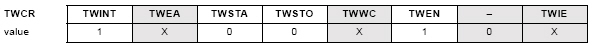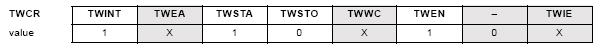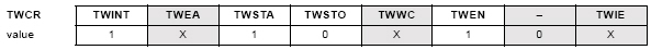 Eine START Bedingung wird gesendet, wenn folgender Wert in das TWCR geschrieben wird.
