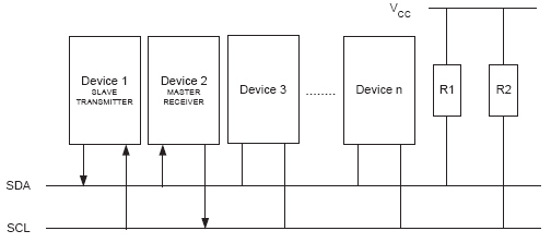 Im Slave Sender Modus werden eine Anzahl von Datenbytes an den Master Empfänger gesendet. Alle Statuscodes die nachfolgend verwendet werden, unterstellen, dass die Vorteilerbits mit 0 maskiert sind.